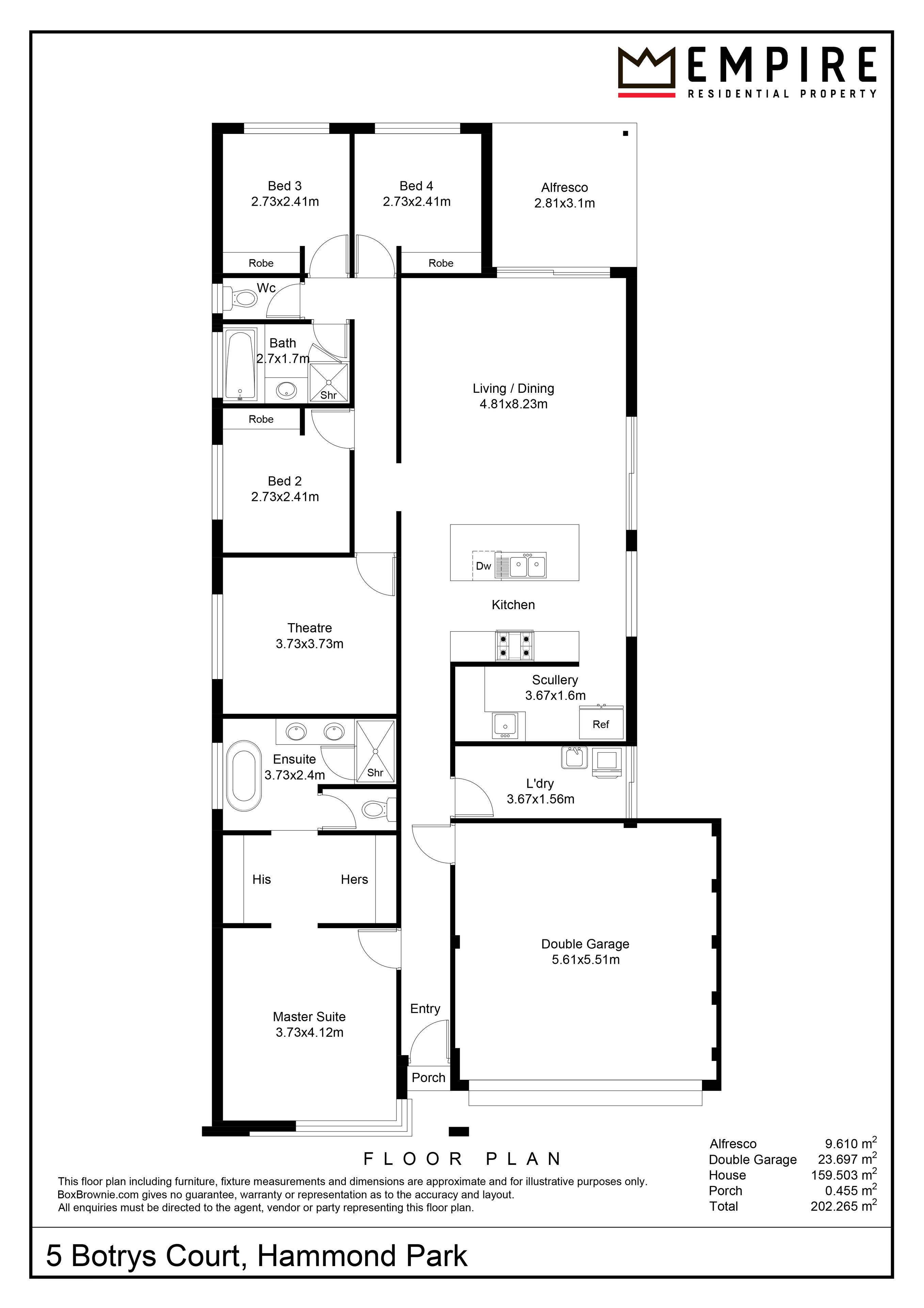 • Spacious master bedroom offers generous his – hers walk in robes and modern en suite composing of standalone bath, dual vanities with storage cupboards, double showers and separate WC